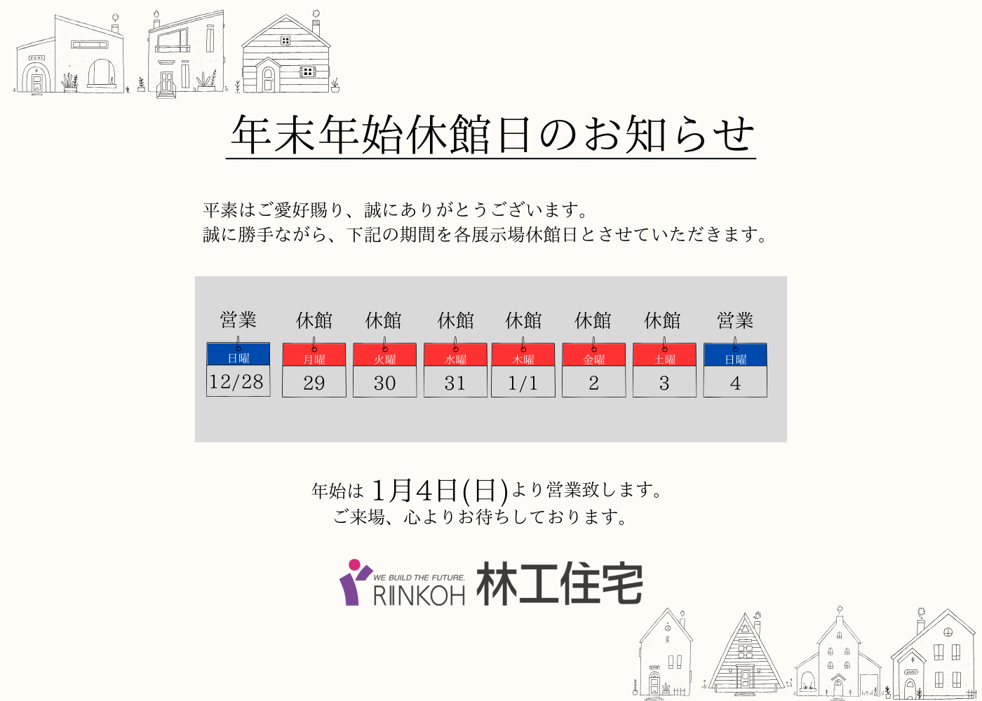 年末年始休館日のお知らせ