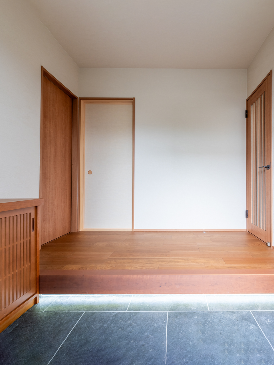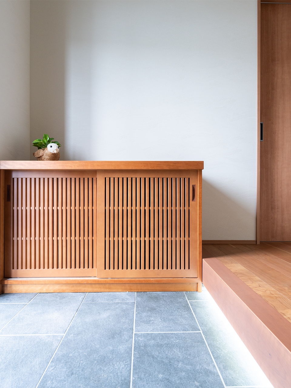 造作の玄関収納にこだわり、和の趣きを